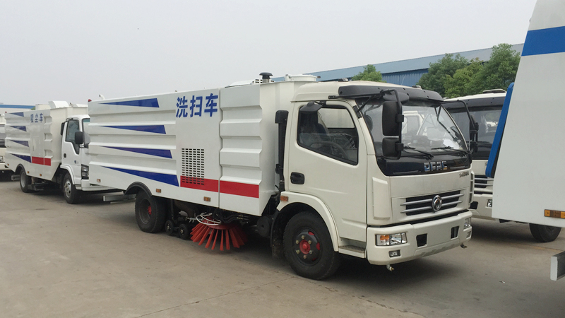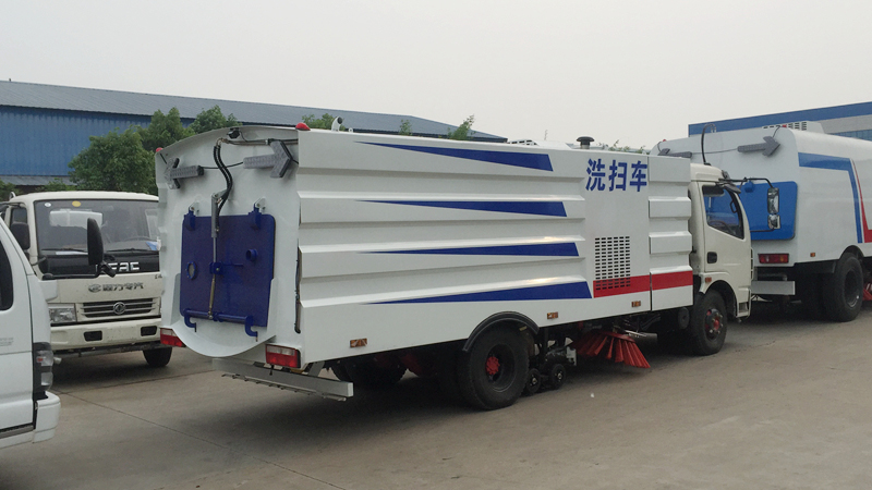 - 底盤發(fā)動機驅動洗掃車向前行走,掃至吸嘴前方的垃圾不斷進入到吸嘴中,并源源不斷地被吸到垃圾箱中,實現(xiàn)路面清掃。