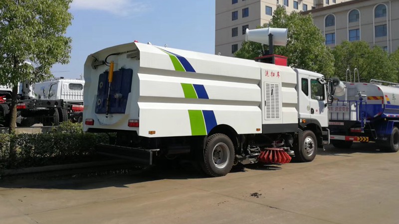 上裝配置: 1、帶2個中置掃盤;中置超寬吸嘴;雙層吸塵筒;康明斯170馬力副發(fā)動機;臺灣液壓閥;大力馬達;德國高壓水泵(前沖/側(cè)噴/中噴/后噴霧)/側(cè)沖洗水槍/垃圾箱自潔裝置);萬向高壓路沿清洗;威龍低壓泵(前沖),氣動球閥控制;4mm不銹鋼垃圾箱;不銹鋼水箱;德國控制器;尾部箭頭燈;機油、垃圾箱、水箱均帶防溢或低位報警裝置;倒車及洗掃狀態(tài)室內(nèi)監(jiān)視器;多種語音提示;倒車自動保護、防傾倒垃圾翻車保護、檢修安全保護;20m高壓沖洗卷盤;刷臂轉(zhuǎn)動機構(gòu)使用德國進口高新耐磨工程隔套,免打黃油;精密冷彎無縫液壓油管;運動控制器一鍵電腦控制。 ![]() 產(chǎn)品功能特點